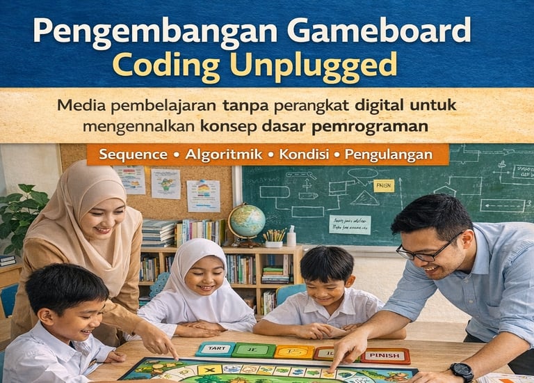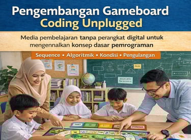 PT Daeri Kode Kreativa mengembangkan gameboard coding unplugged sebagai media pembelajaran tanpa perangkat digital untuk mengenalkan konsep dasar pemrograman. Gameboard ini membantu peserta didik memahami urutan instruksi (sequence), logika algoritmik, kondisi, dan pengulangan melalui aktivitas bermain yang kolaboratif dan kontekstual.